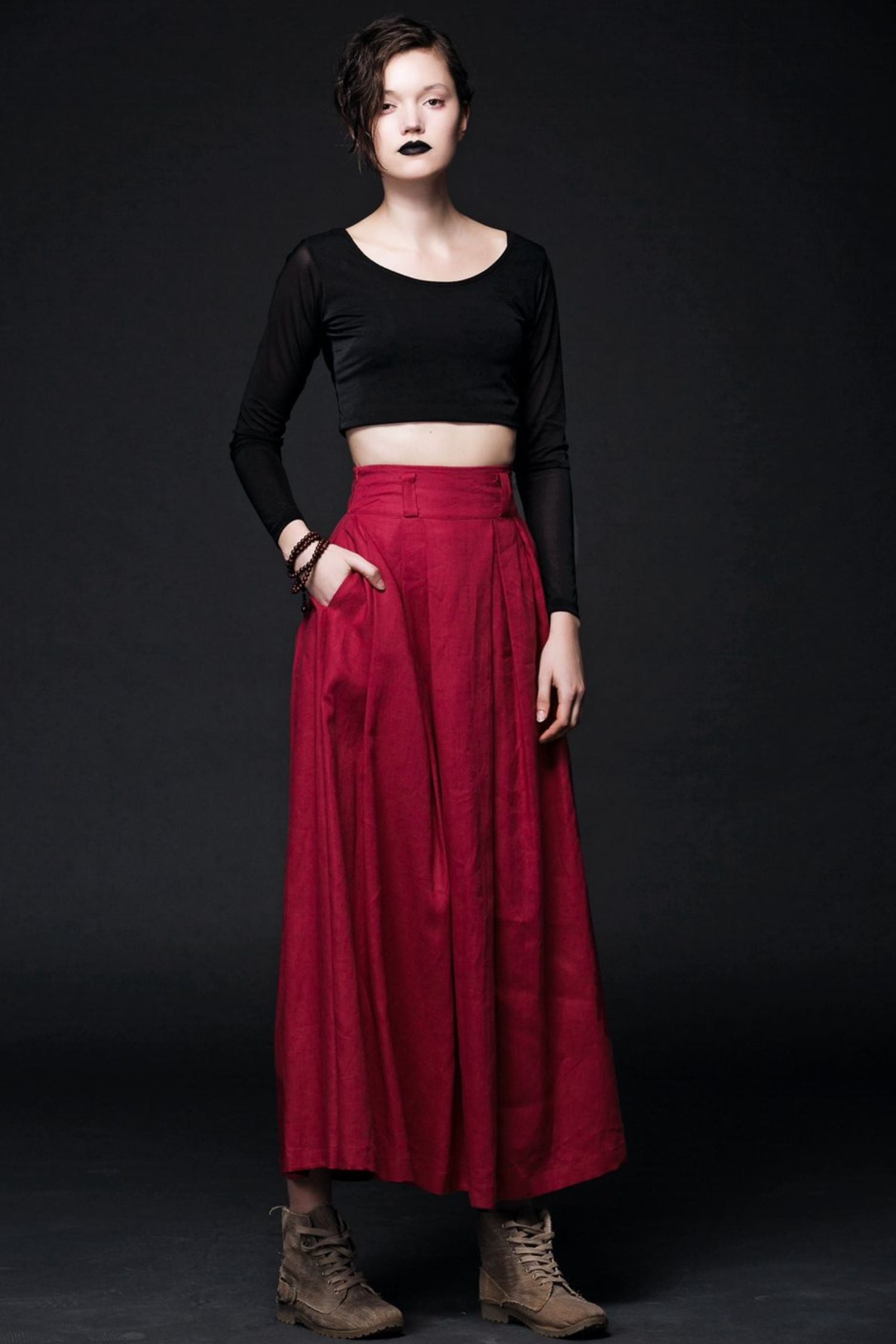 Elevate your wardrobe with our Red Linen Long Maxi Womens Skirt! Made from high-quality linen, this skirt boasts a beautiful, bold red color, perfect for adding a pop of color to any outfit. The long maxi design provides a flattering silhouette, while the lightweight and breathable fabric ensures comfort for all-day wear. Add this versatile skirt to your collection and experience effortless style and comfort.