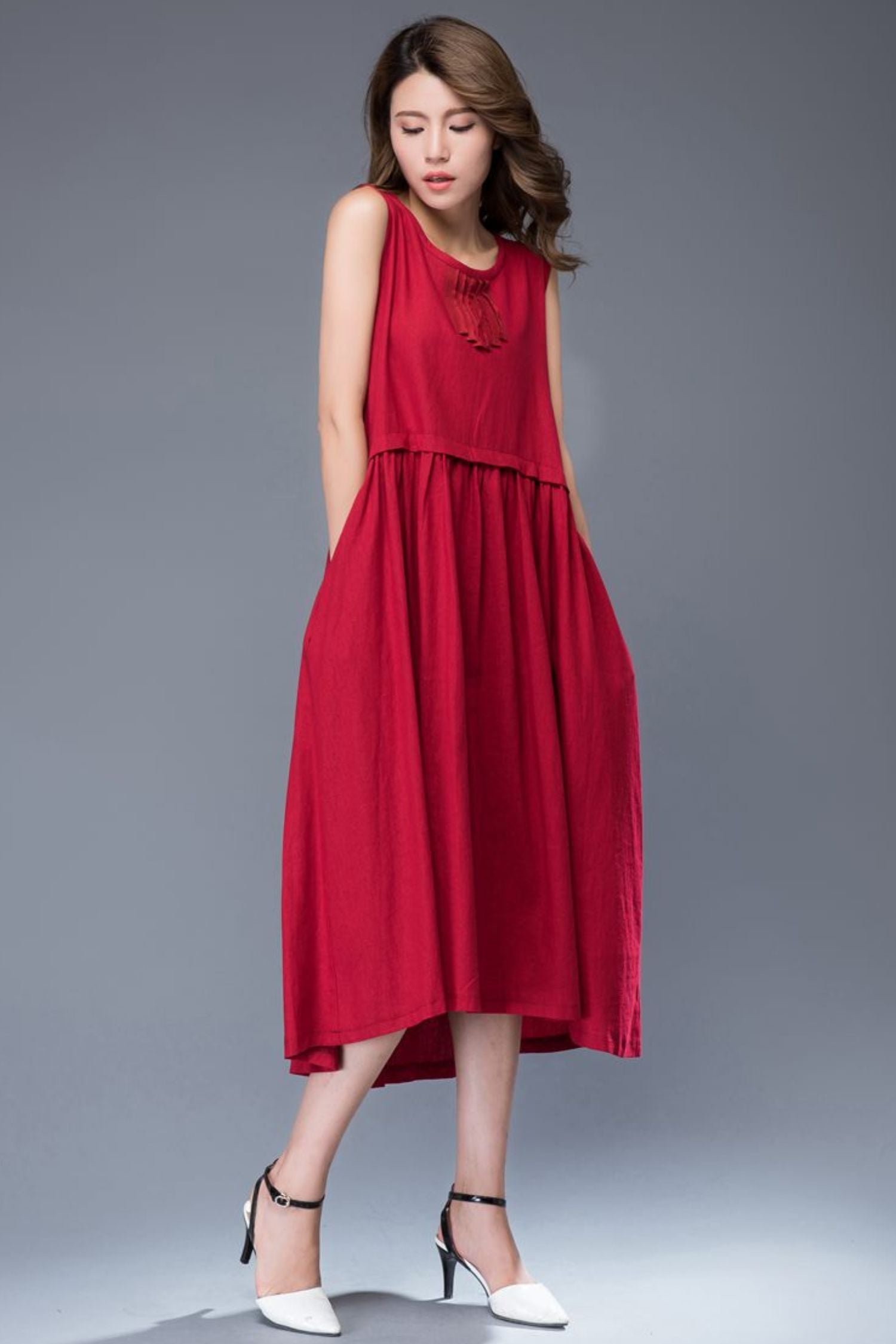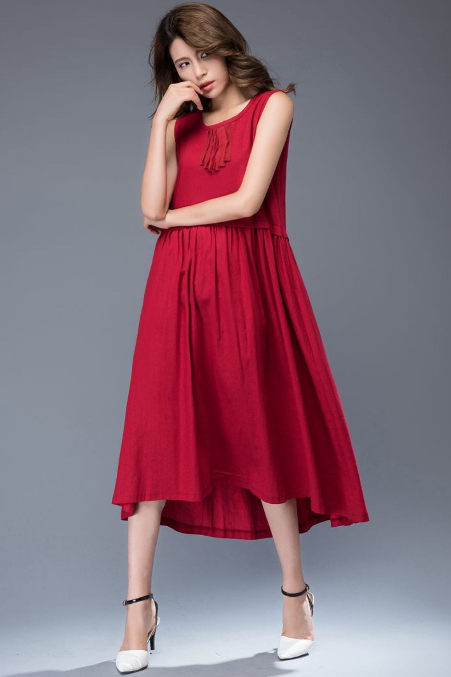 Step out in style this summer with our stunning red linen midi dress! Featuring a sleeveless design and loose fit, this dress is perfect for staying cool and comfortable while still looking chic. The breathable linen fabric adds an elegant touch to this must-have dress. Make a statement at any event with this versatile piece.