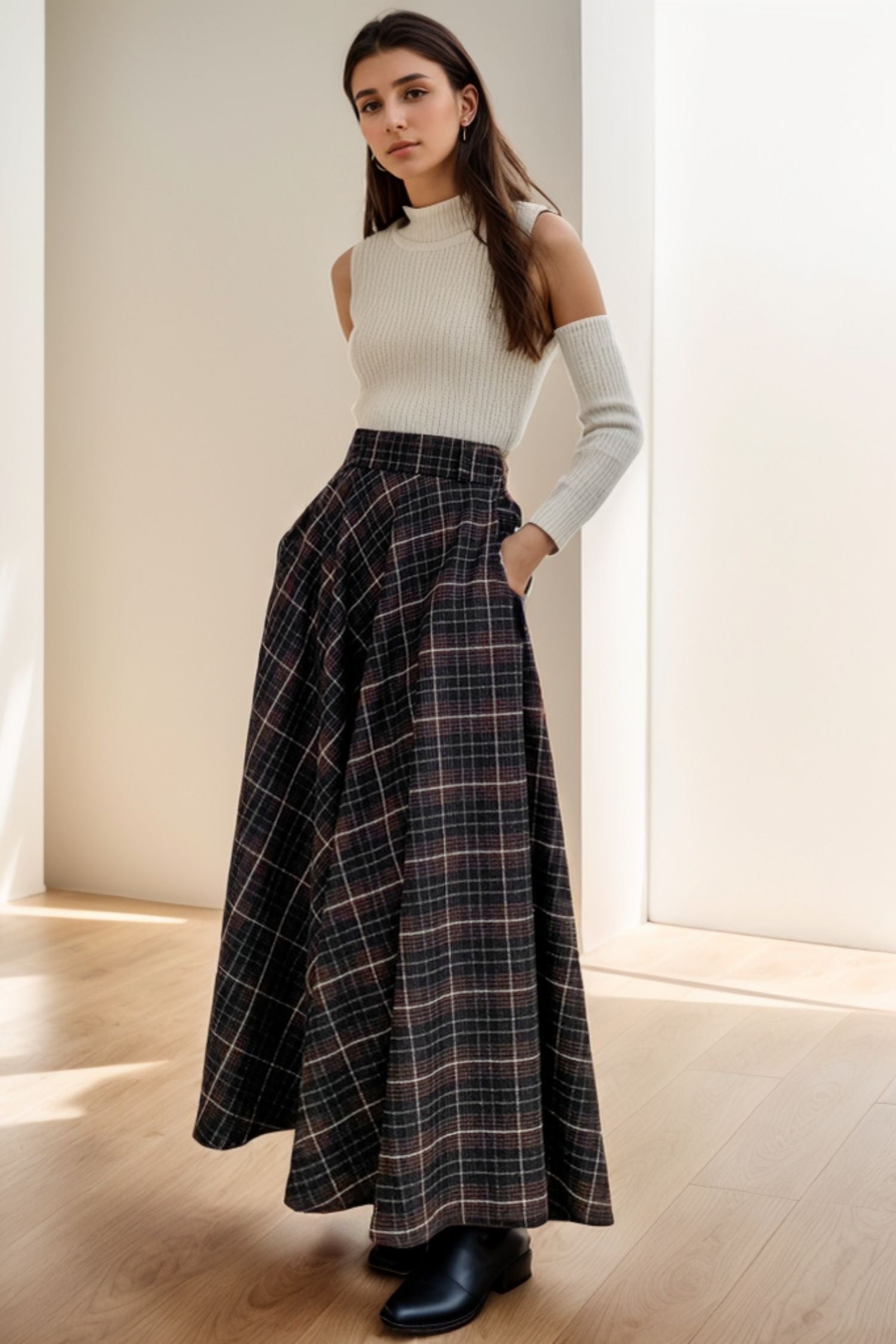 Effortlessly stylish and timeless, our Retro Plaid High Waisted Maxi Wool Skirt is a must-have addition to your wardrobe. With its classic plaid pattern and comfortable high-waisted design, this skirt is perfect for any occasion. Made with high-quality wool, it will keep you warm and cozy all day long. Elevate your style and make a statement with this versatile and chic piece!
