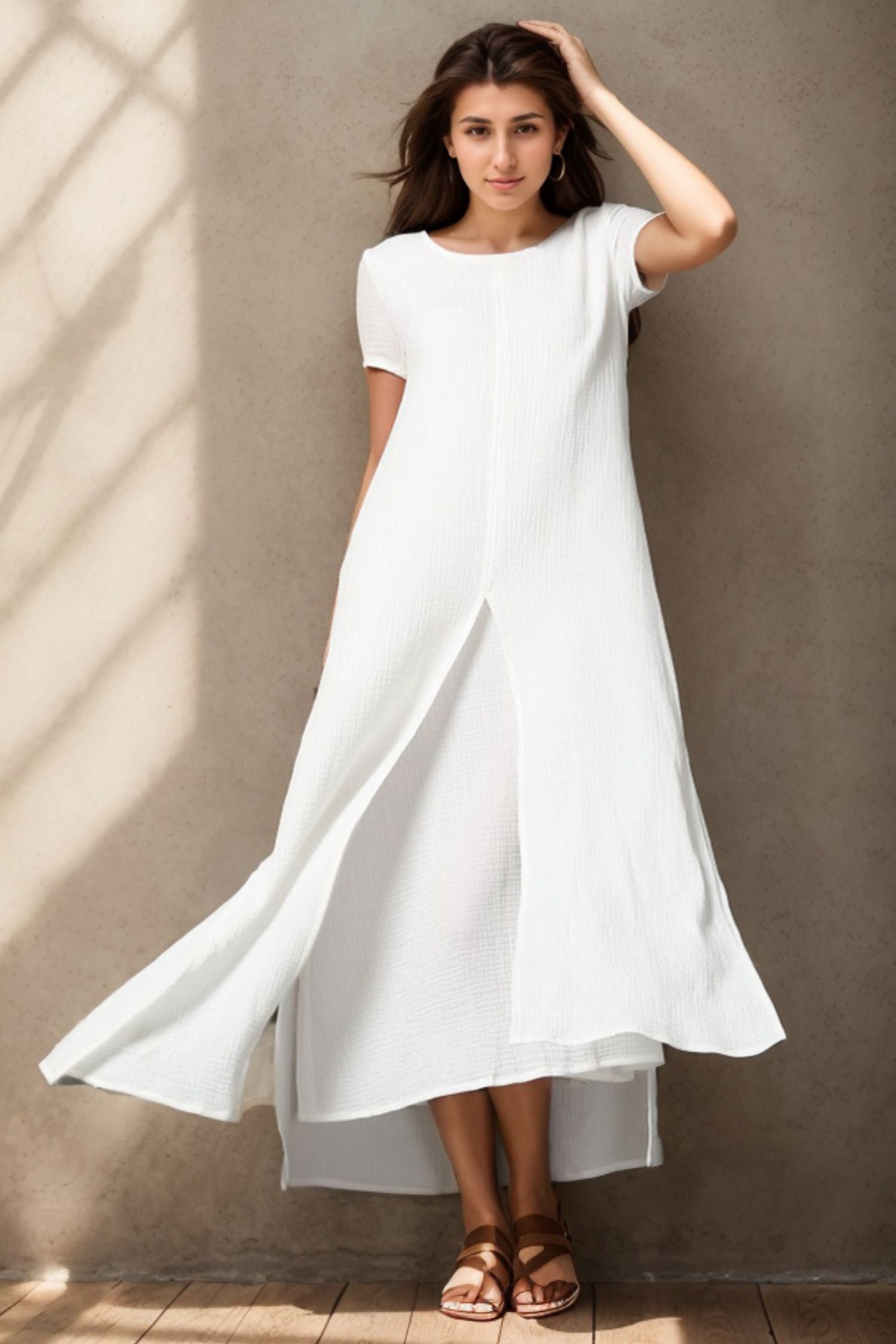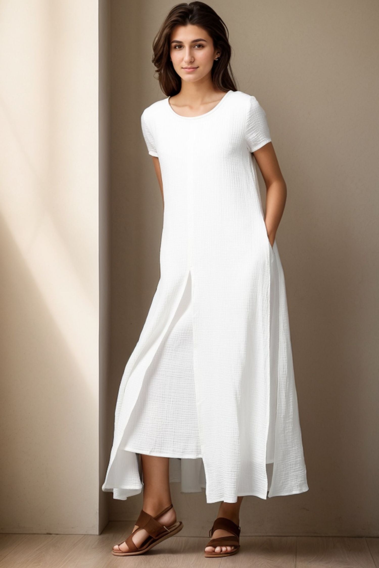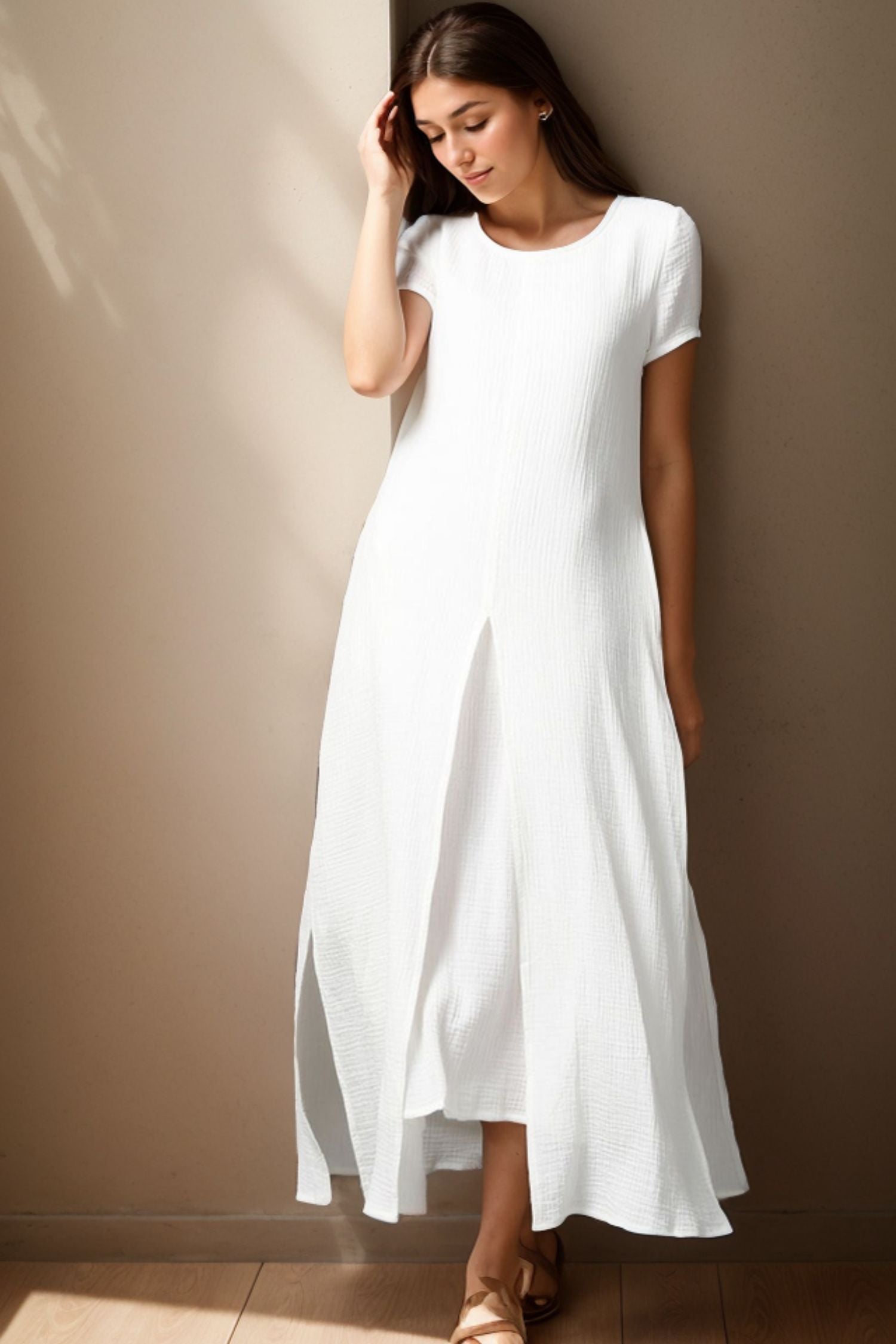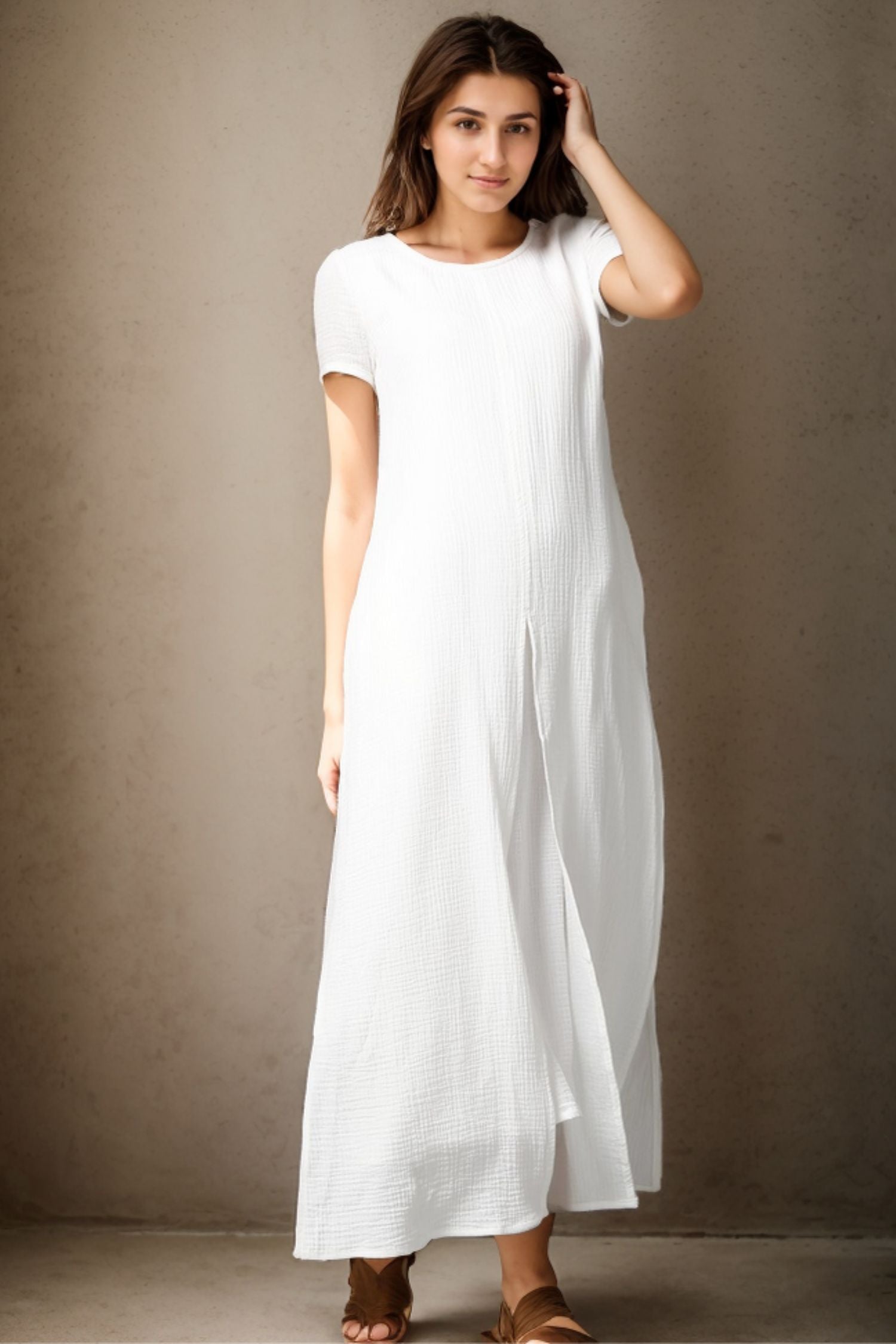 Elevate your style with our Short Sleeve White Maxi Linen Dress for women. Made with high-quality linen, this dress exudes elegance and sophistication. The short sleeves add a touch of femininity while the maxi length creates a sleek and stylish look. Perfect for any occasion, this dress will make you stand out with its timeless beauty.