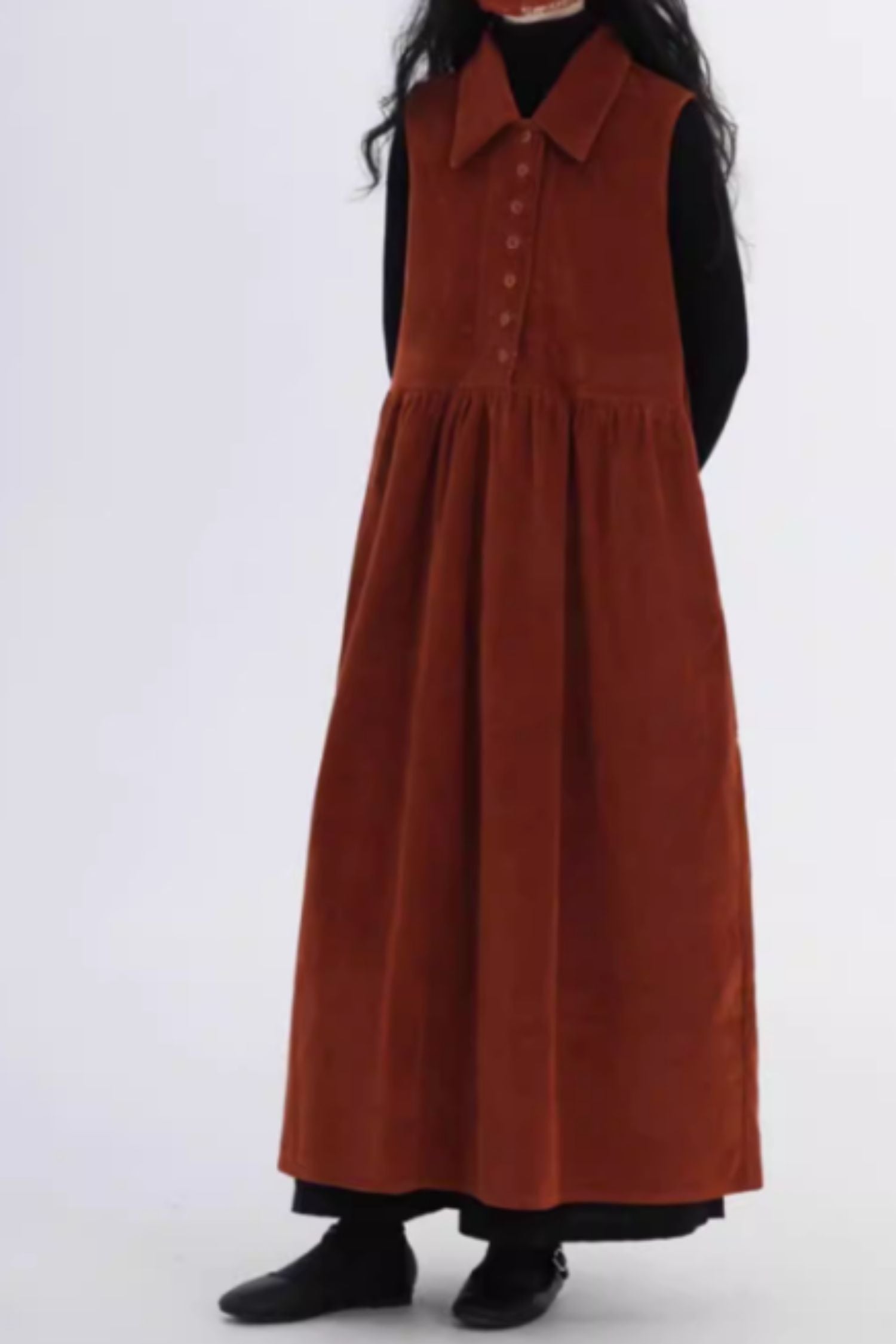 Elevate your wardrobe with this timeless sleeveless corduroy dress, a versatile piece that transitions effortlessly from season to season. The rich texture of premium corduroy creates visual depth and dimension, while the flowing silhouette flatters every figure. Perfect for layering with turtlenecks or cardigans during cooler months, or wearing solo when temperatures rise. The classic long length offers sophisticated coverage without sacrificing style, making it ideal for casual outings, weekend brunches, or relaxed office settings. Durable corduroy fabric ensures this dress becomes a reliable favorite you'll reach for again and again. Invest in a piece that combines comfort, quality, and understated elegance.