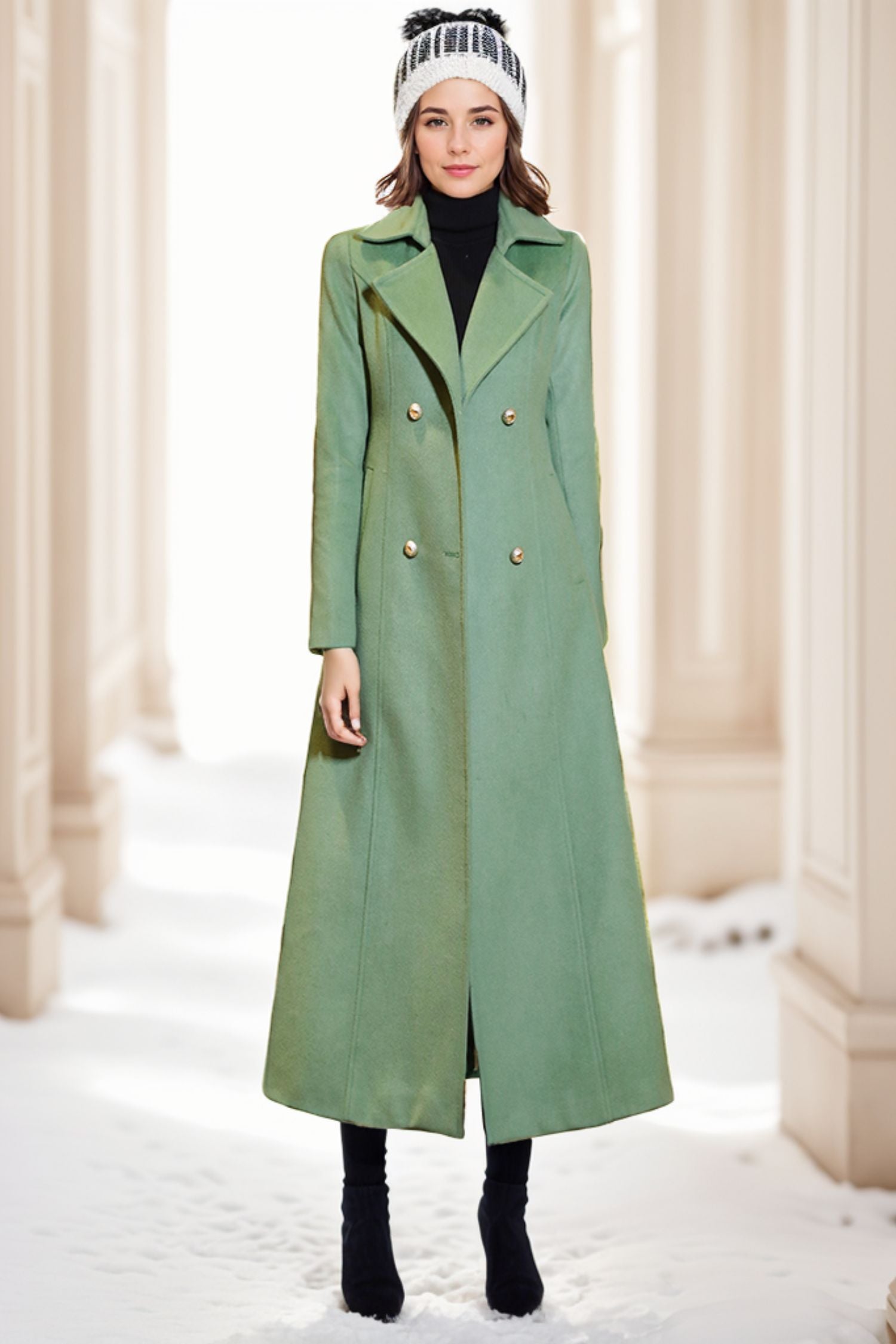 Trench Green Wool Coat Women C4074