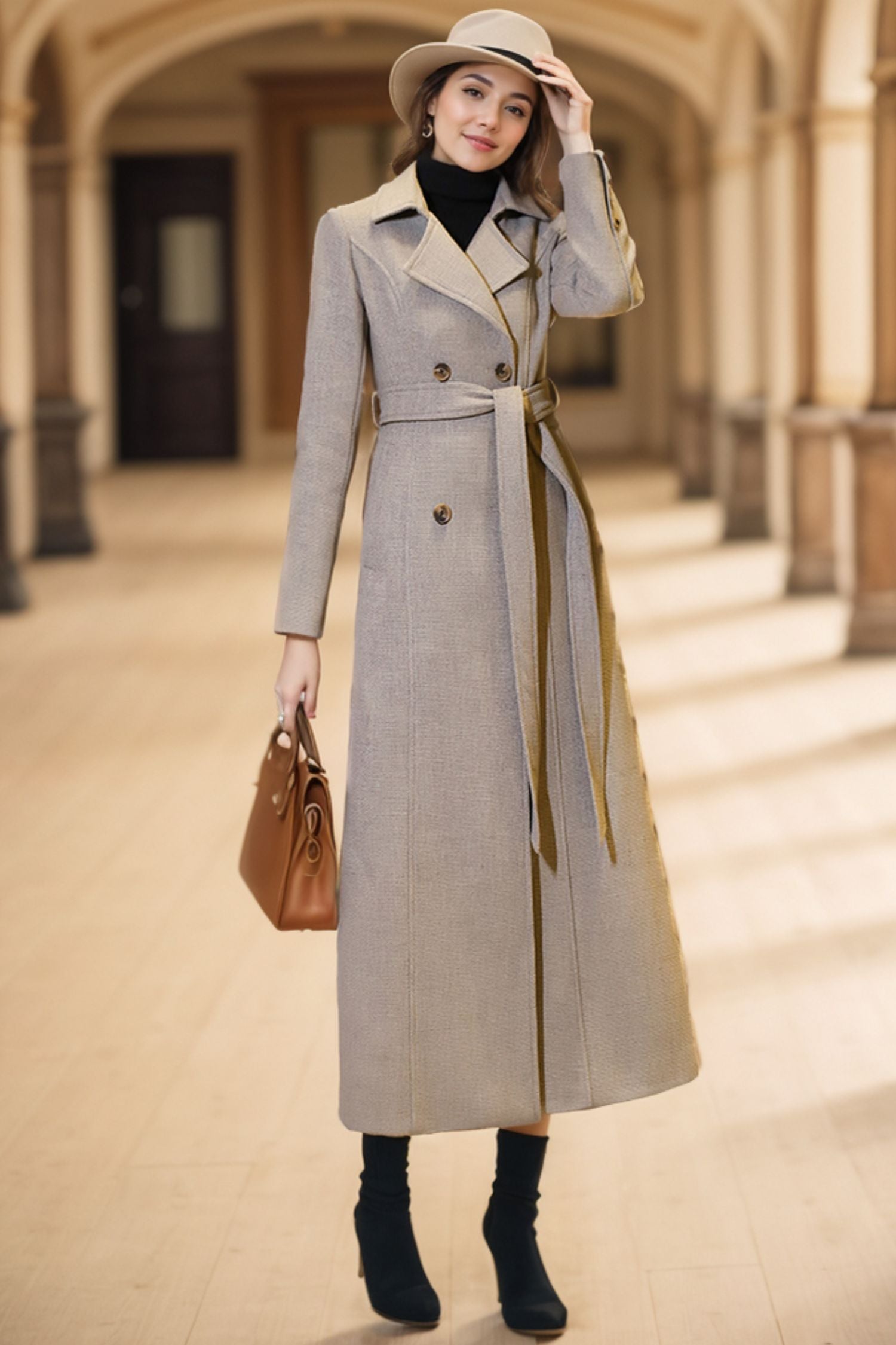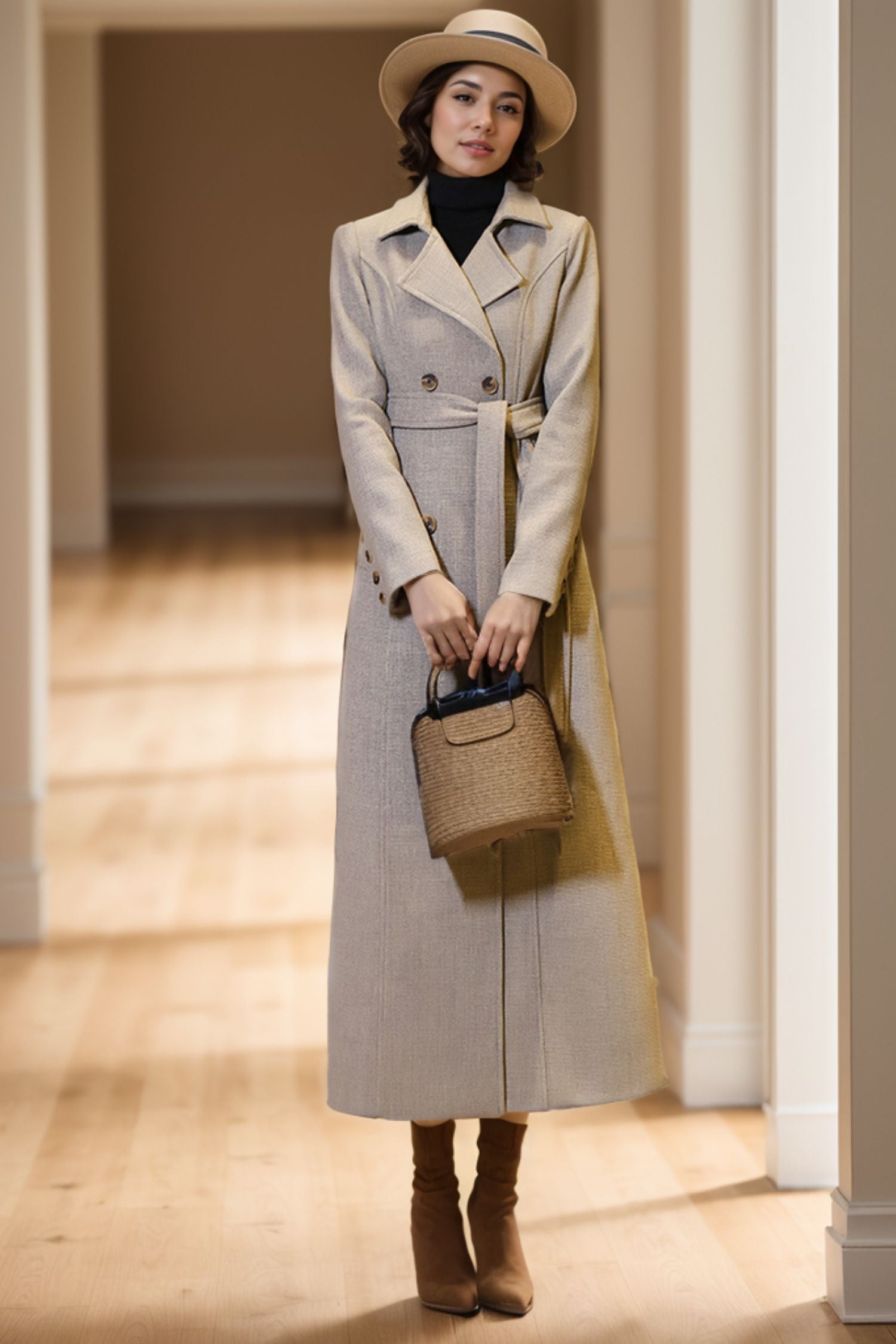 Take your fashion game to the next level with our Trench Wool A line Coat for women. Crafted with the finest wool, this luxurious coat boasts a timeless A-line silhouette that exudes elegance and sophistication. Perfect for any occasion, it will keep you warm and stylish in the colder months.