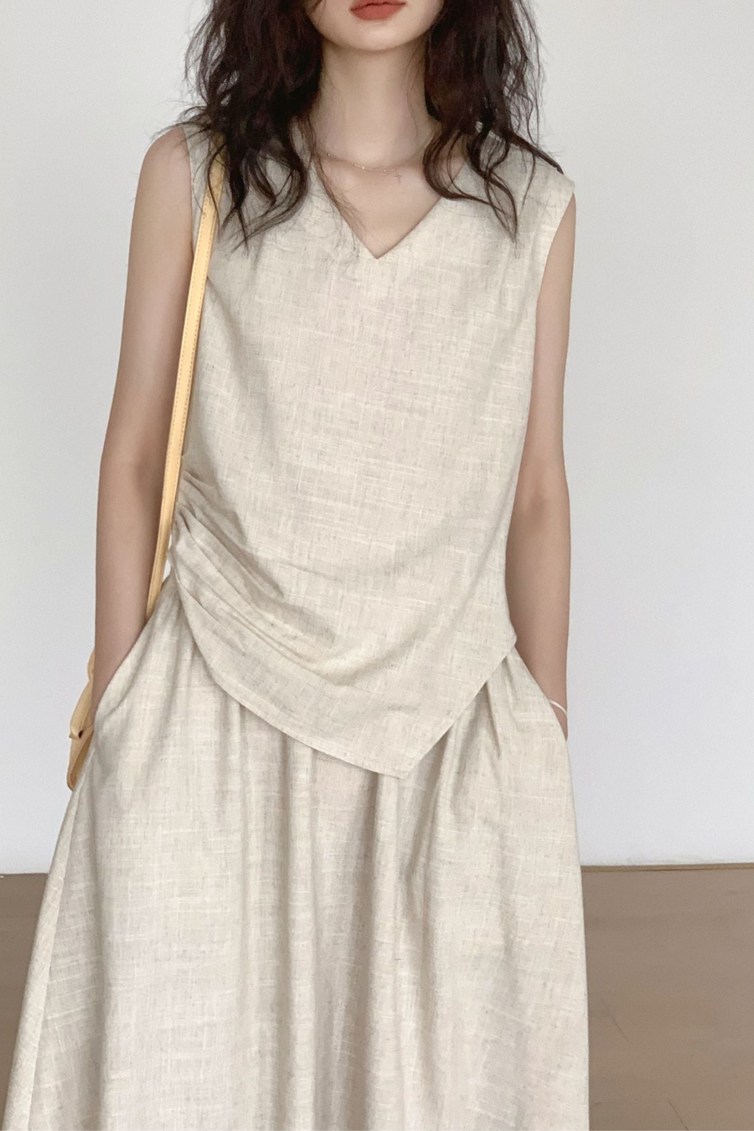 v-neck cotton linen sleeveless dress HY0004