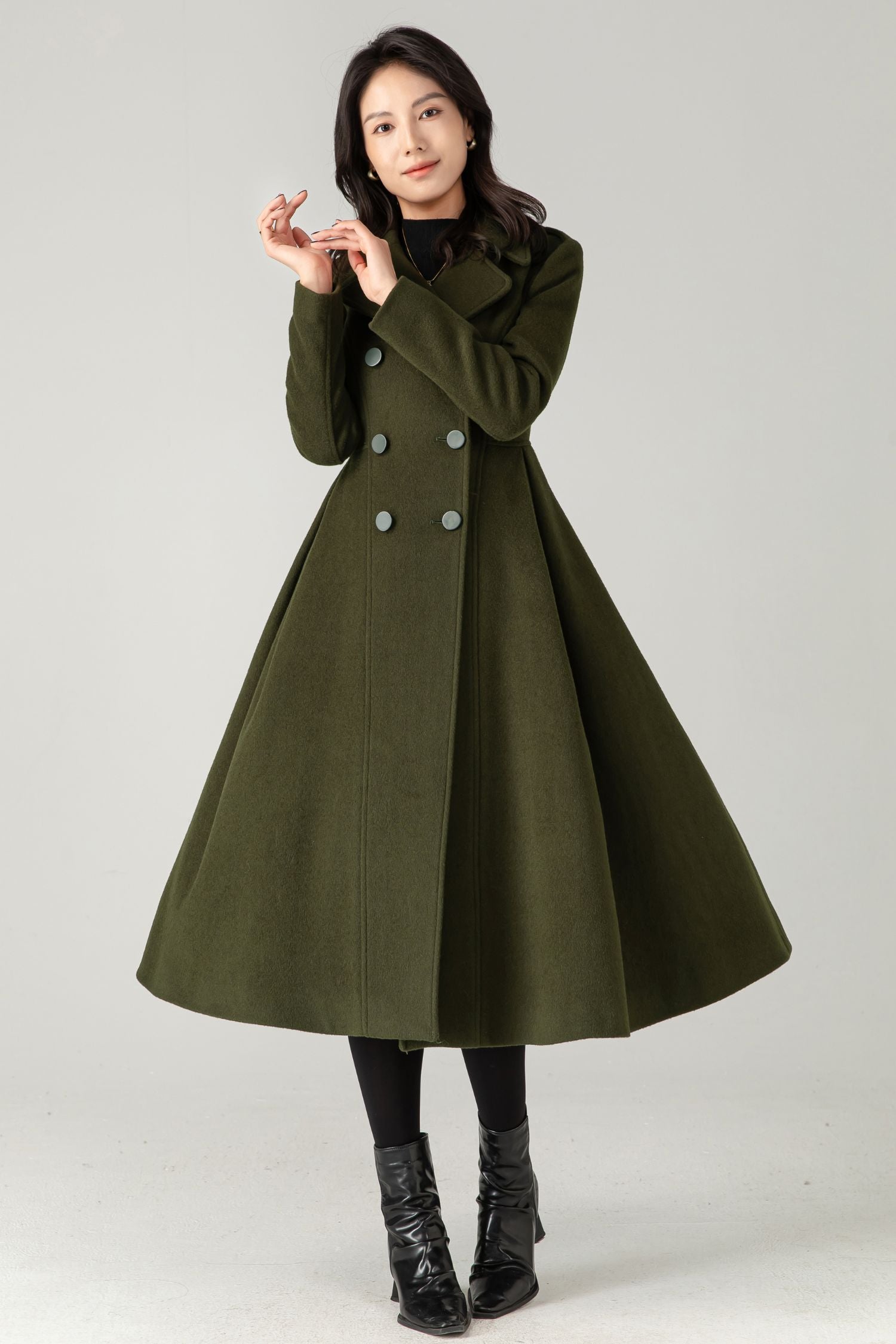 Step into timeless elegance with this vintage-inspired long princess coat in rich army green. Crafted with classic silhouette and refined details, this statement piece channels retro sophistication while remaining effortlessly modern. The flowing length and structured fit create a flattering, regal appearance perfect for elevating any wardrobe. Whether you're dressing up for special occasions or adding polish to everyday looks, this coat delivers vintage charm with contemporary wearability. A versatile essential that transforms your style with understated luxury and enduring appeal.