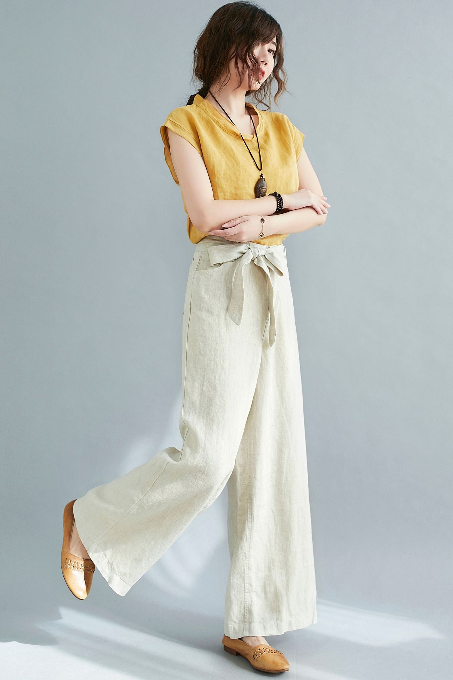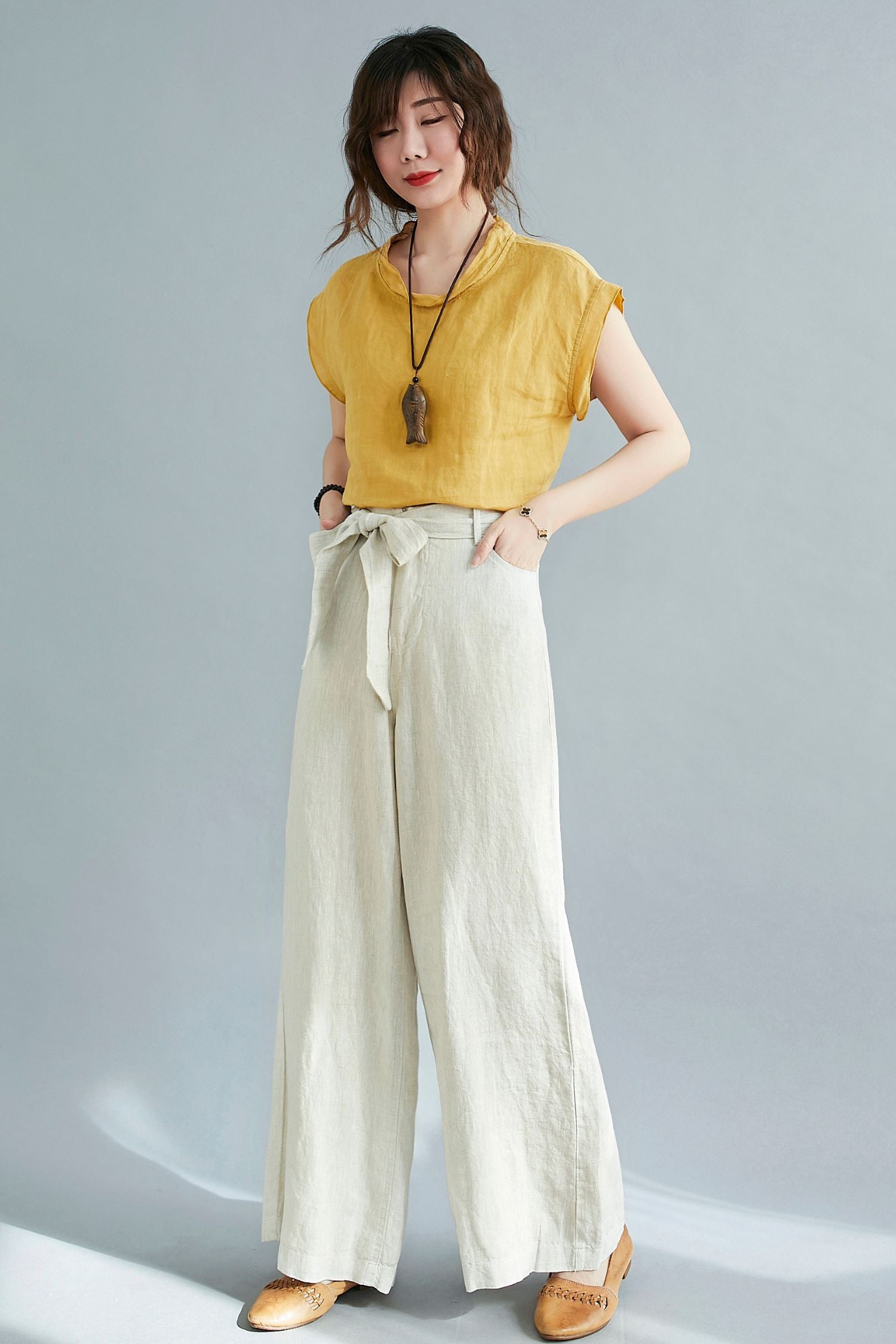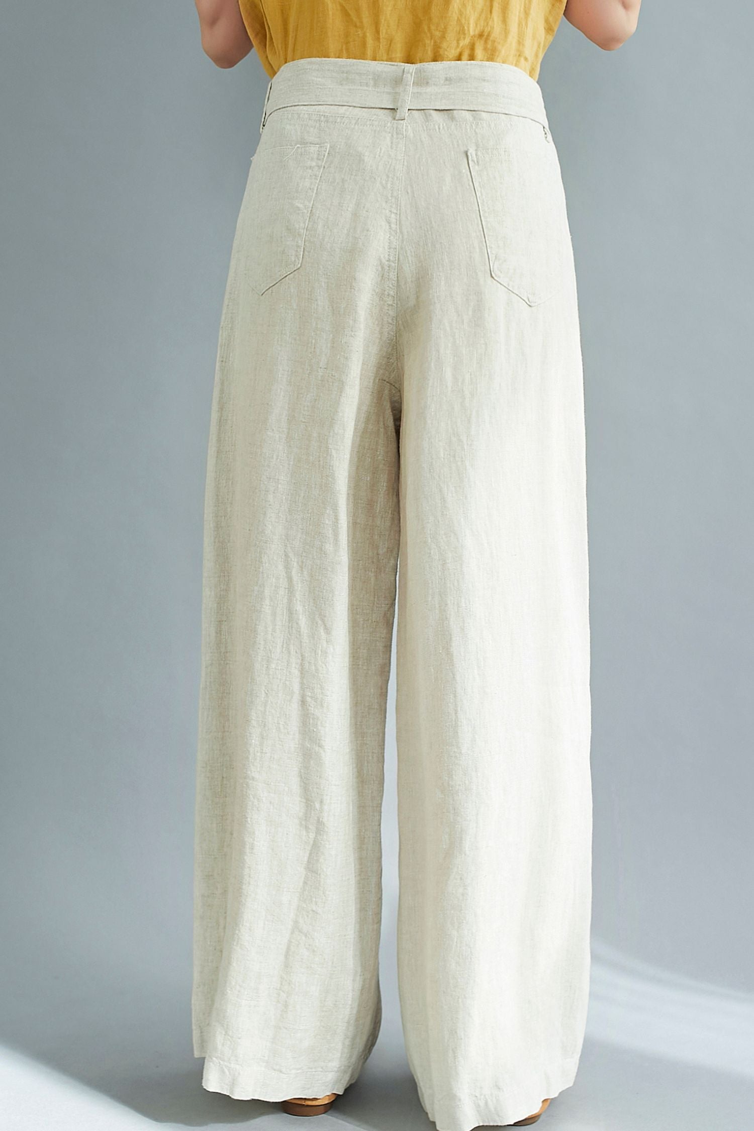 Embrace effortless style and comfort with our Wide leg beige Linen High Waist Long pants! Made with high-quality linen, these pants offer a comfortable, breathable fit, while the high waist design creates a flattering silhouette. The wide-leg cut adds a touch of elegance and versatility to your wardrobe. Elevate your fashion game today!