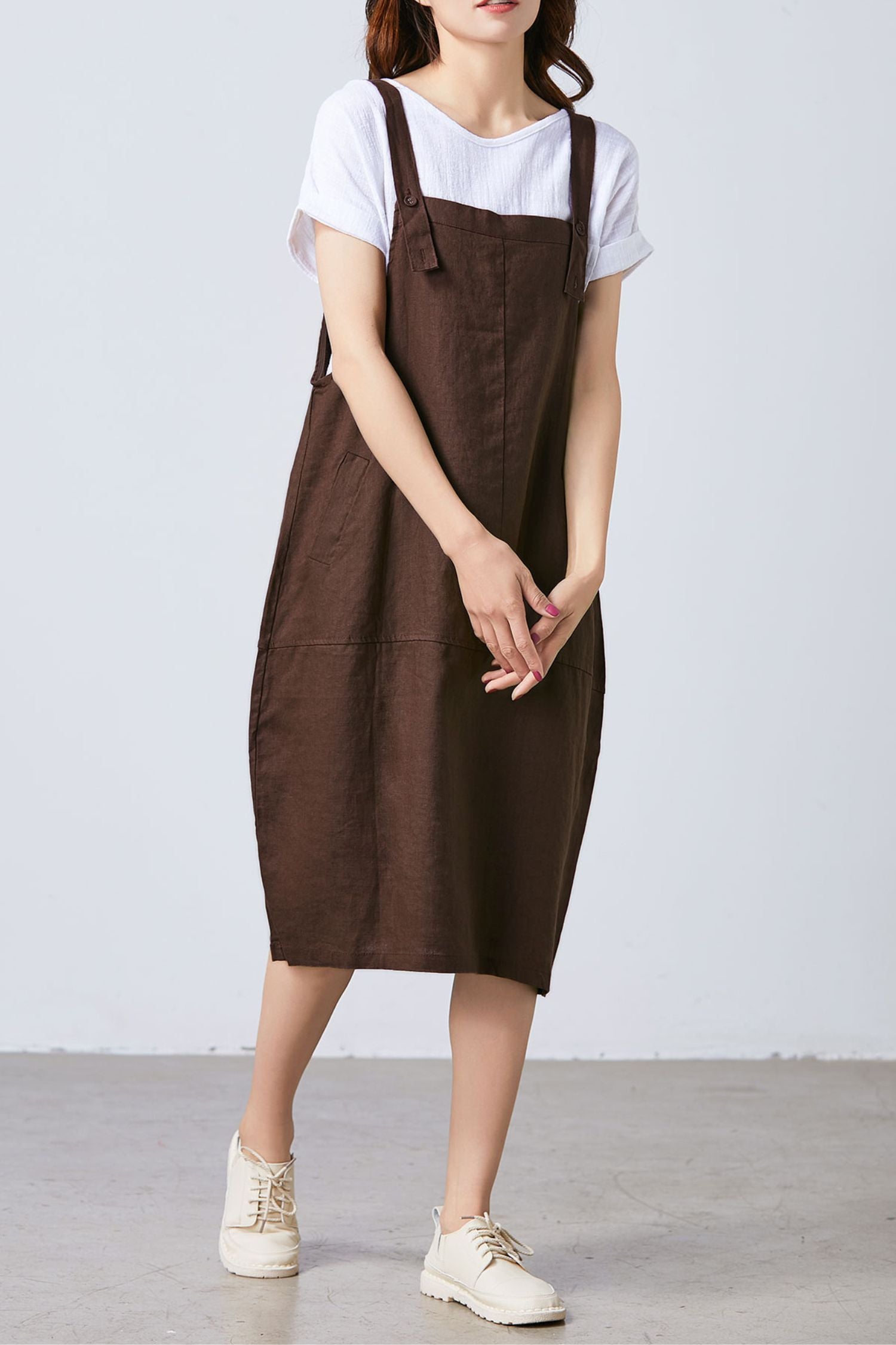 Indulge in effortless style with our Women Casual Linen Vest Dress. Crafted from luxurious linen, this strap dress boasts a loose fit and convenient pockets. Perfect for any occasion, let this dress elevate your look with its understated elegance and functionality. Available in C1700.