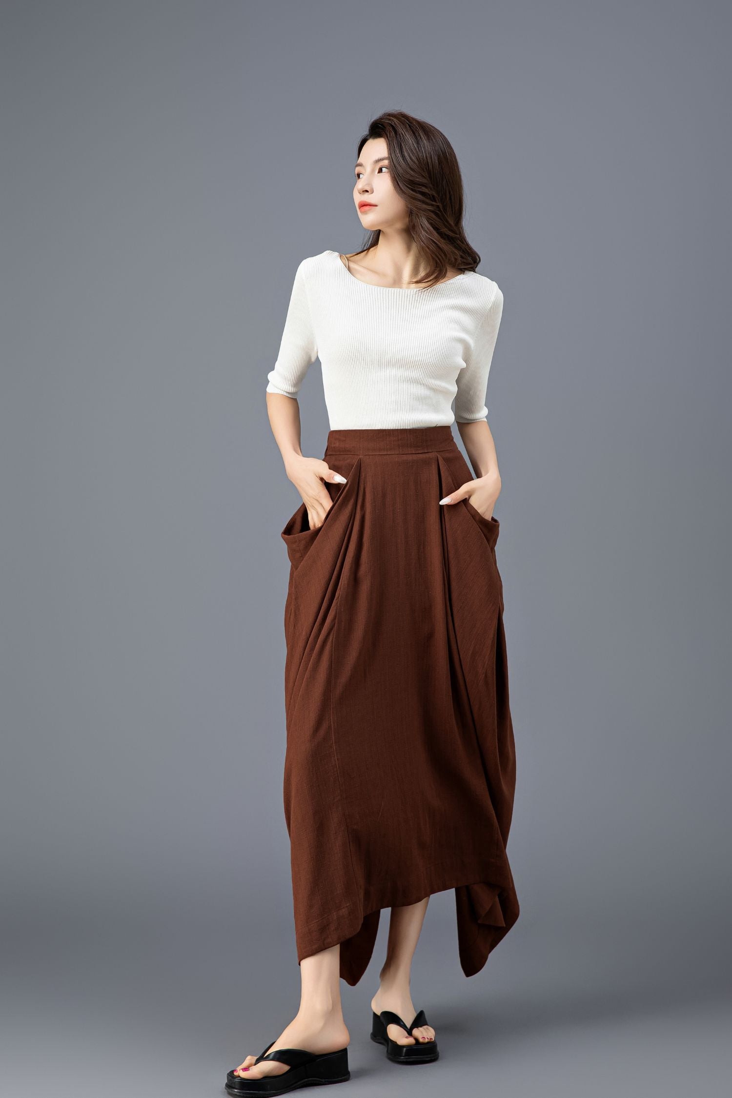 Elevate your style with our Women's Asymmetrical Casual Linen Skirt C3918. Crafted from high-quality linen, this skirt offers a flowy and luxurious feel. Featuring an asymmetrical design and convenient pockets, it effortlessly combines fashion and functionality. Perfect for any occasion, this skirt is a must-have for sophisticated and exclusive looks.