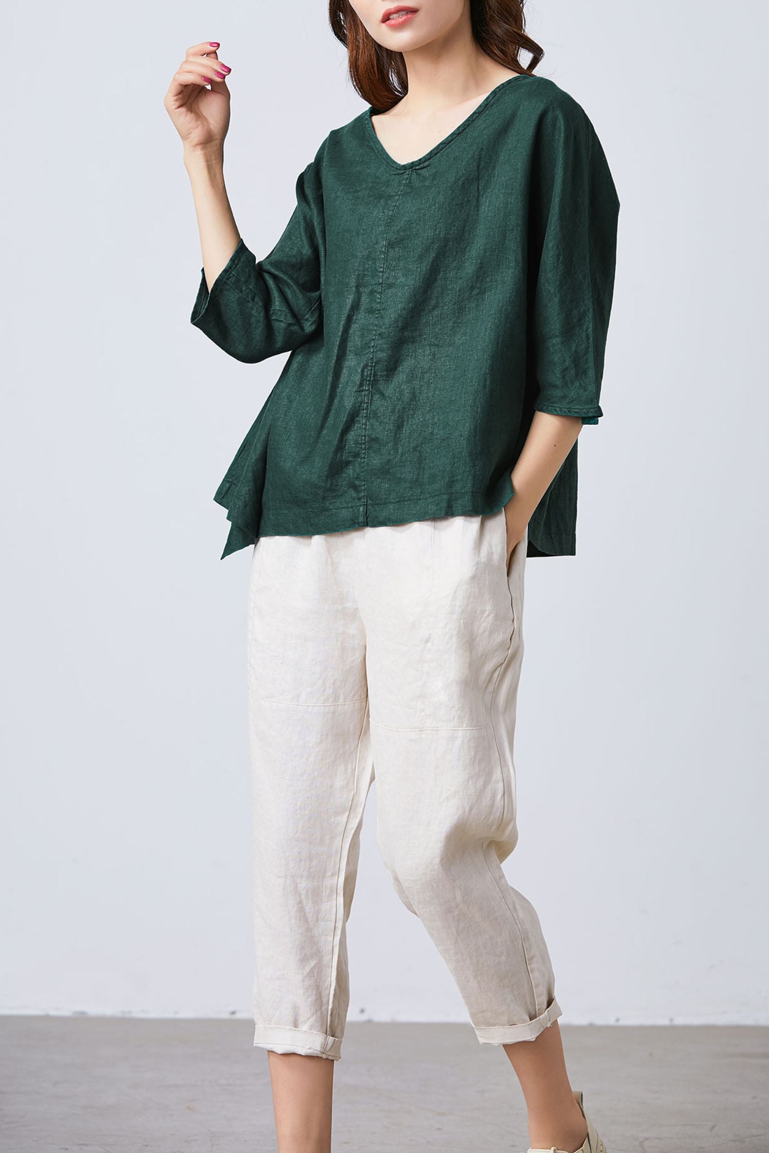 Simplicity and sophistication meld together in our Women's Casual Green Linen Tops. Crafted from high-quality linen, these tops offer effortless style and comfort. Perfect for any occasion, the green color adds a touch of nature to your wardrobe. Elevate your look with this luxurious piece.
