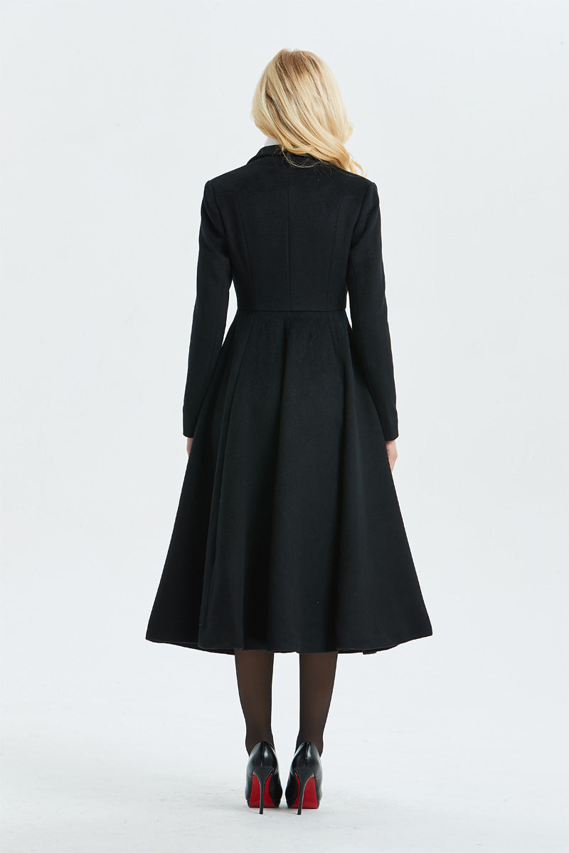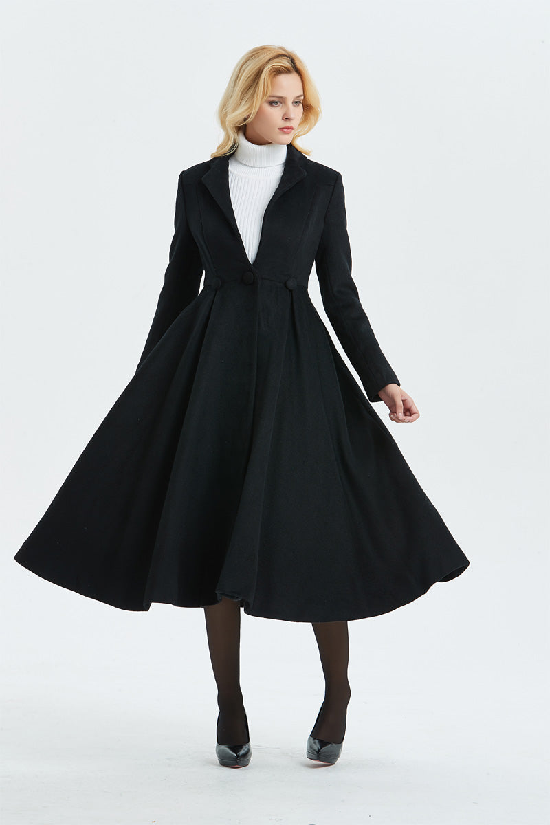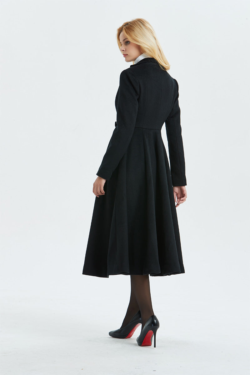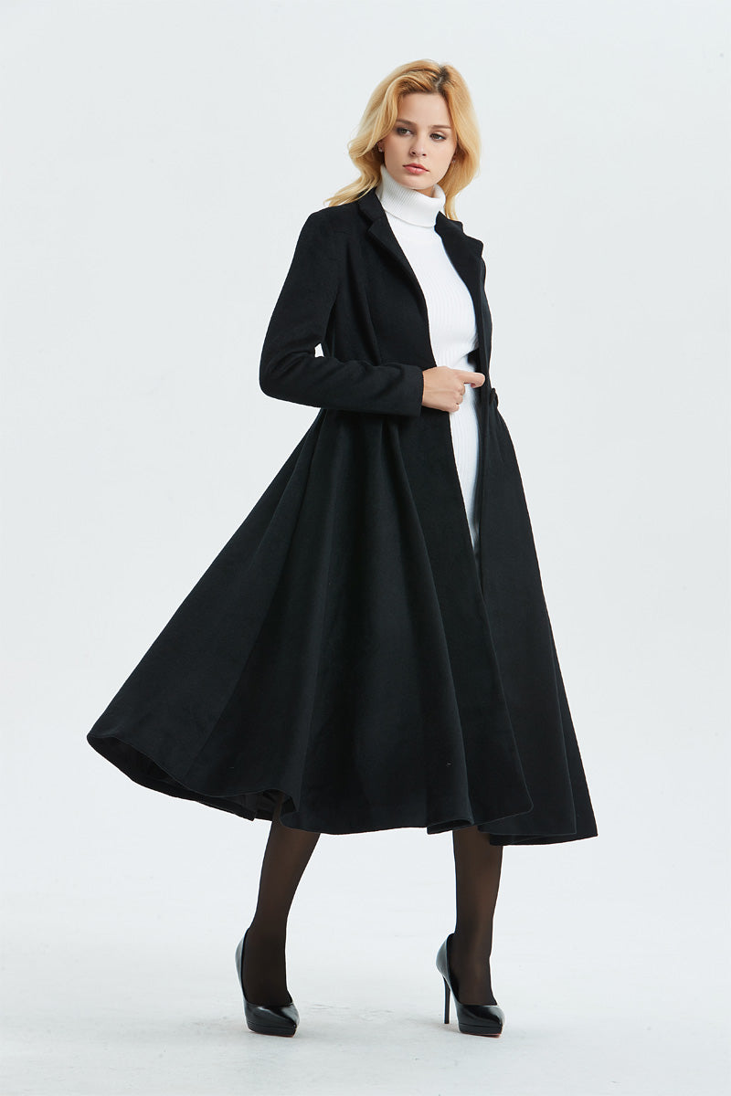 Women's Long Black Wool Coat C1338
