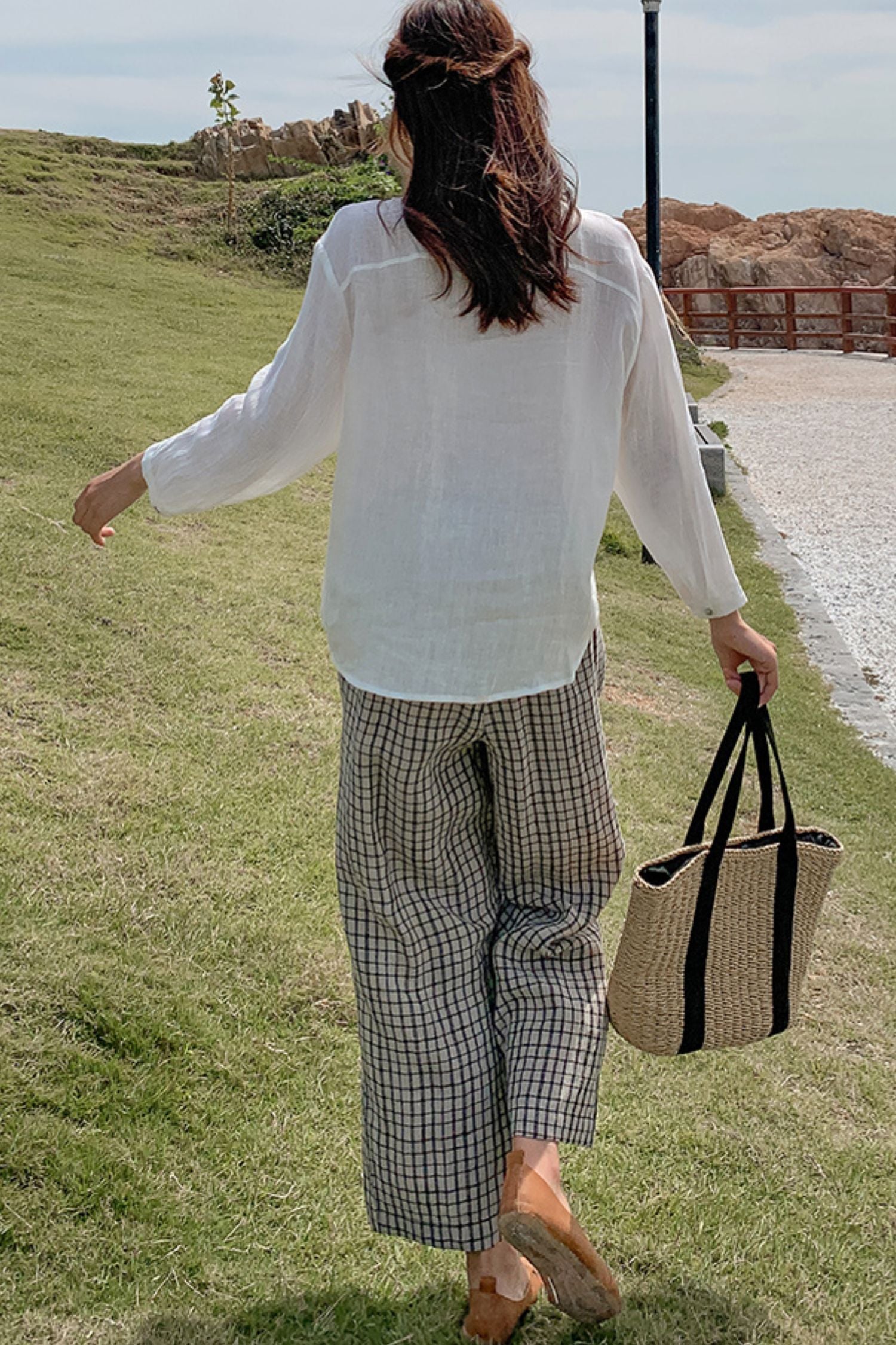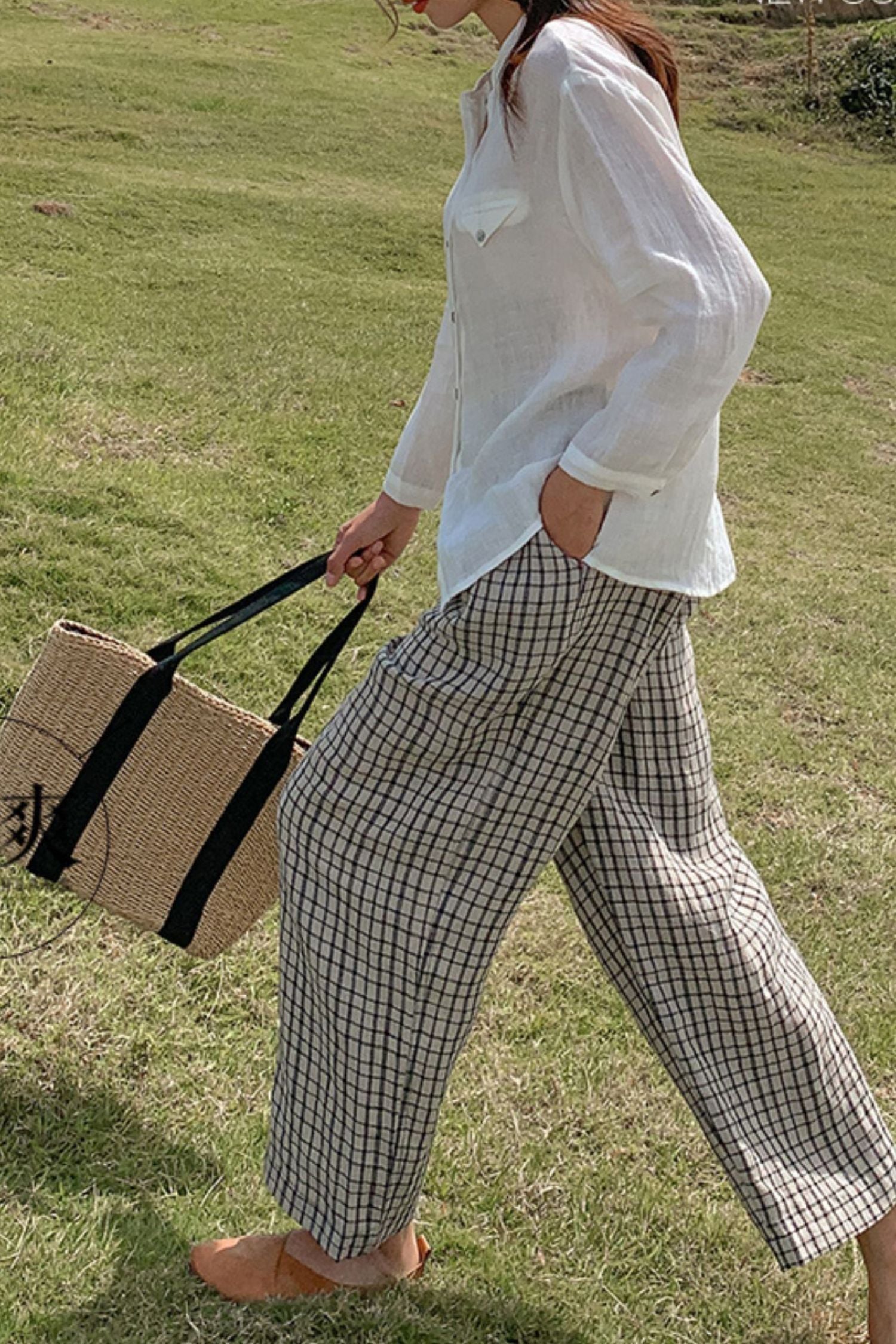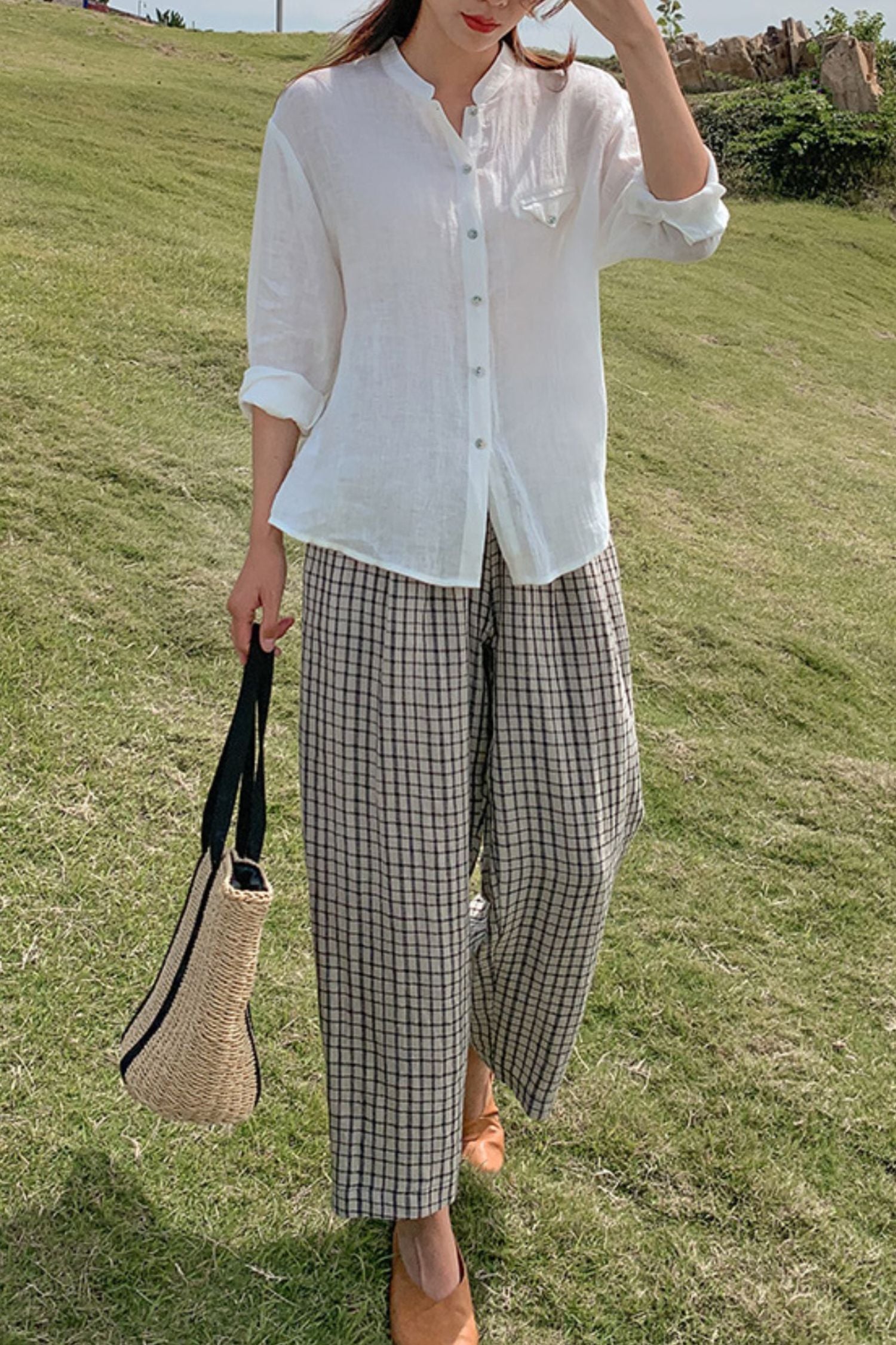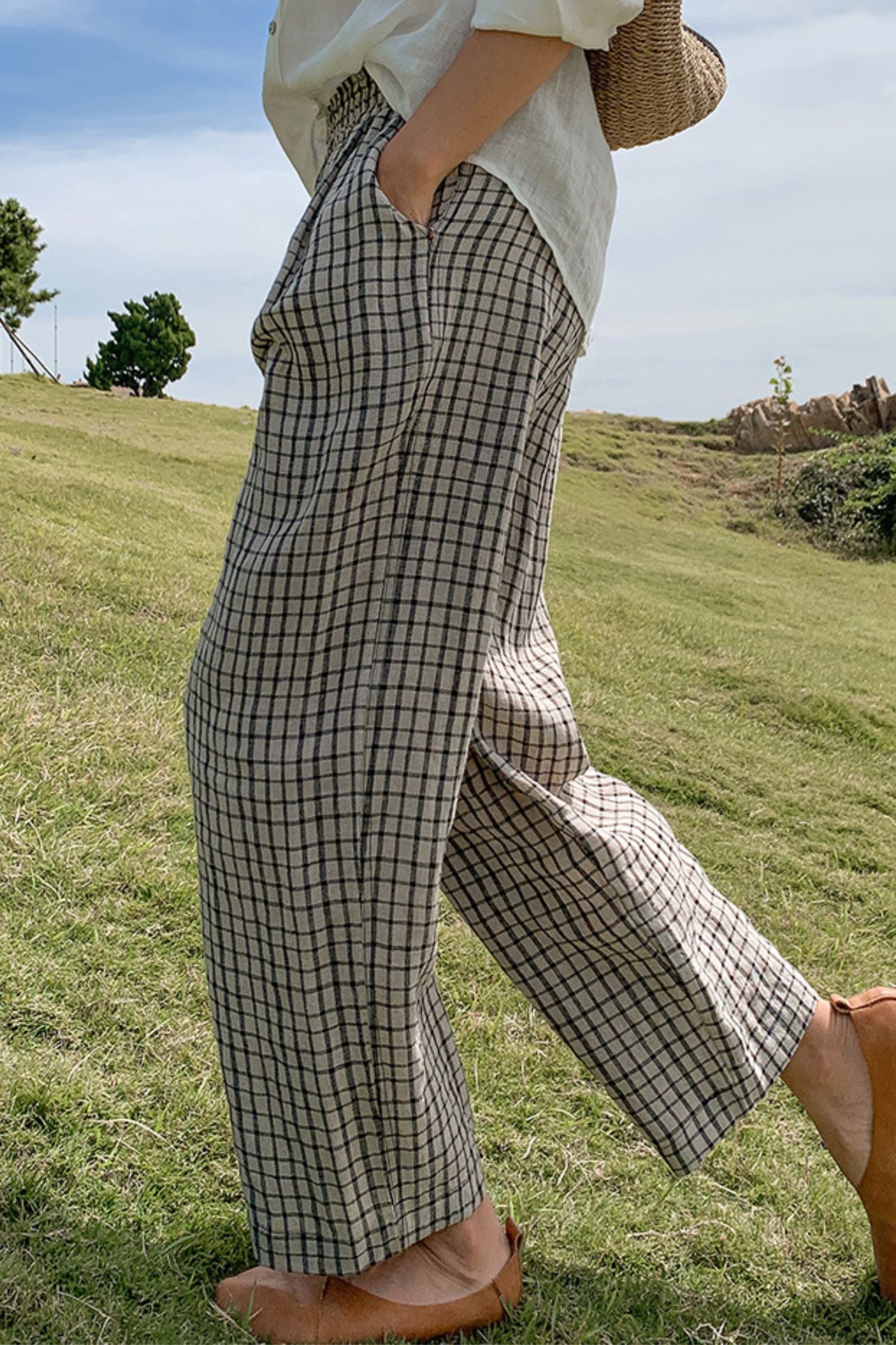 Plaid wide leg pants