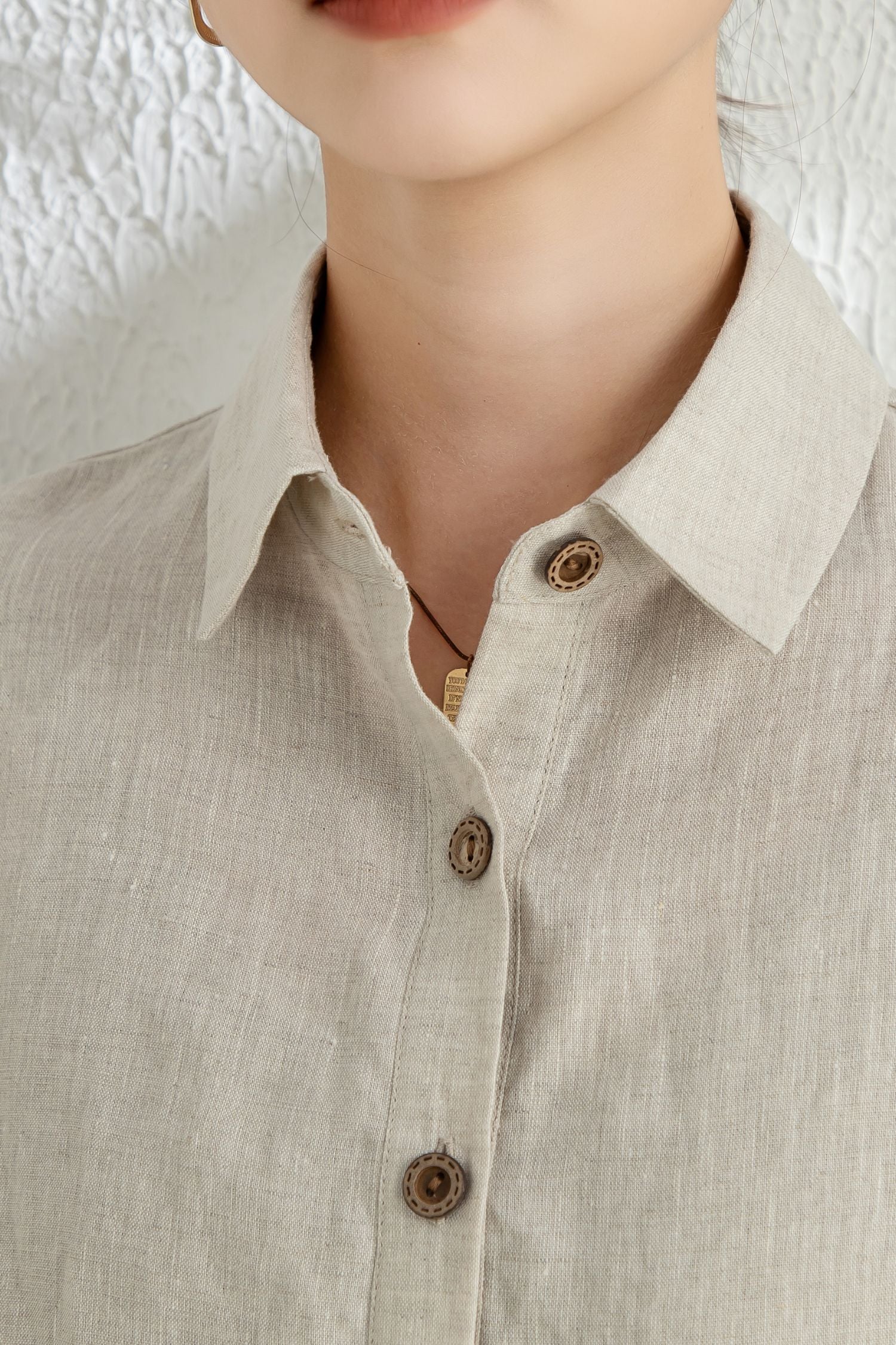Wrap yourself in luxury with our Women's Summer short sleeve linen Shirt. Made from premium linen fabric, this elegant shirt will keep you cool and comfortable during the warm summer months. Its short sleeves and lightweight design make it perfect for any occasion. Stay stylish and comfortable with our exclusive linen shirt.