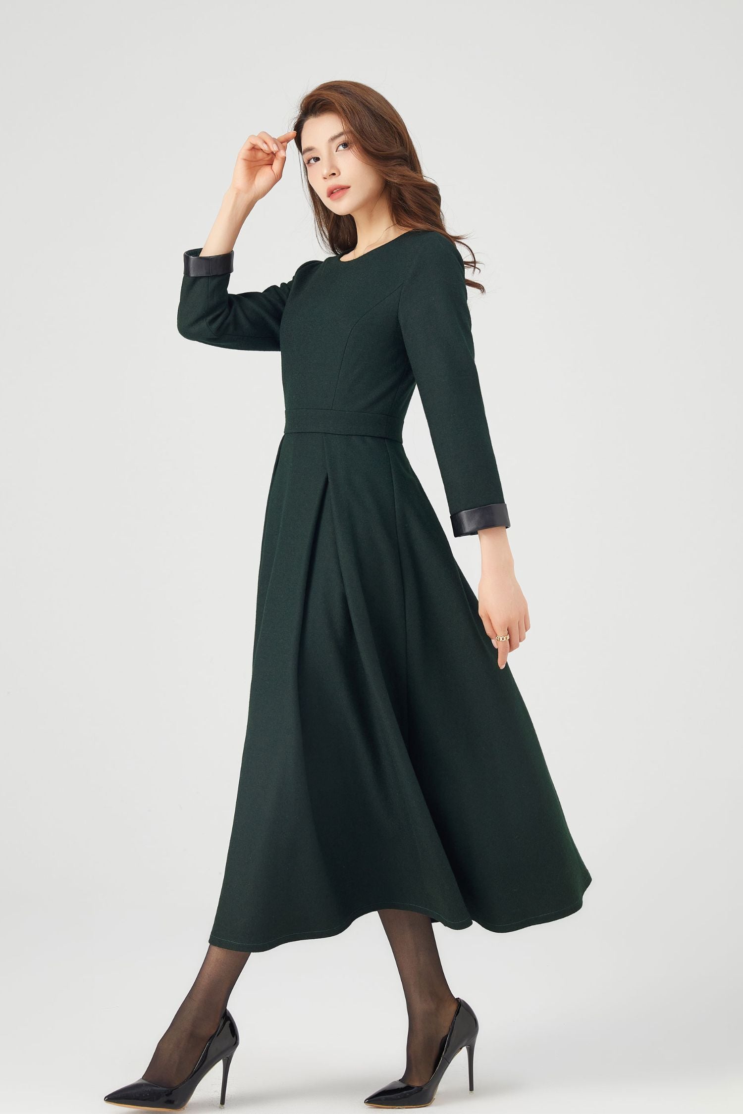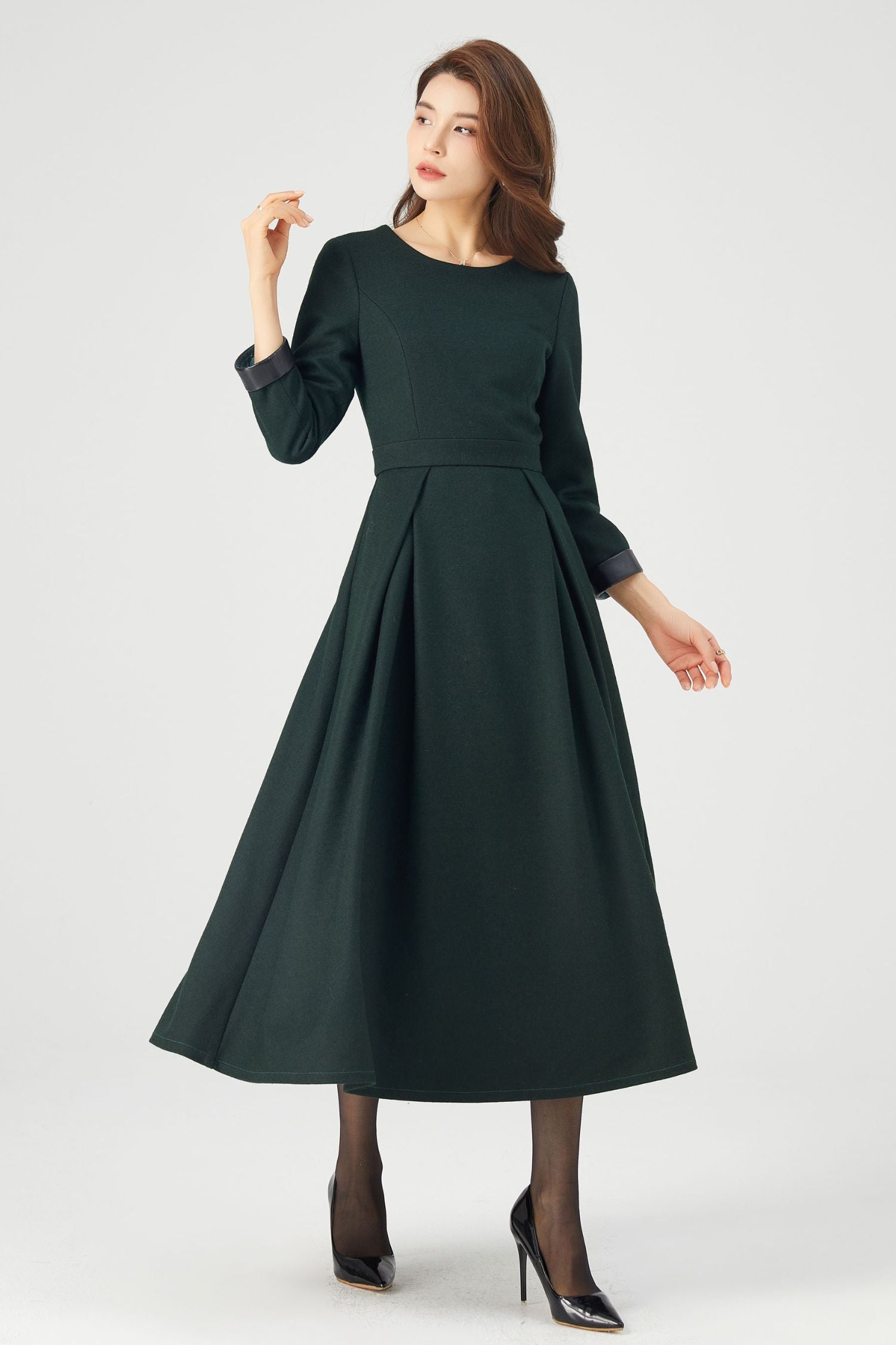 Indulge in elegance and luxury with our Womens Winter Green Midi Wool Dress. Made with high-quality wool, this dress will keep you warm while exuding sophistication and refinement. Its timeless and versatile design makes it a staple for your winter wardrobe. Elevate your style with this exclusive piece.