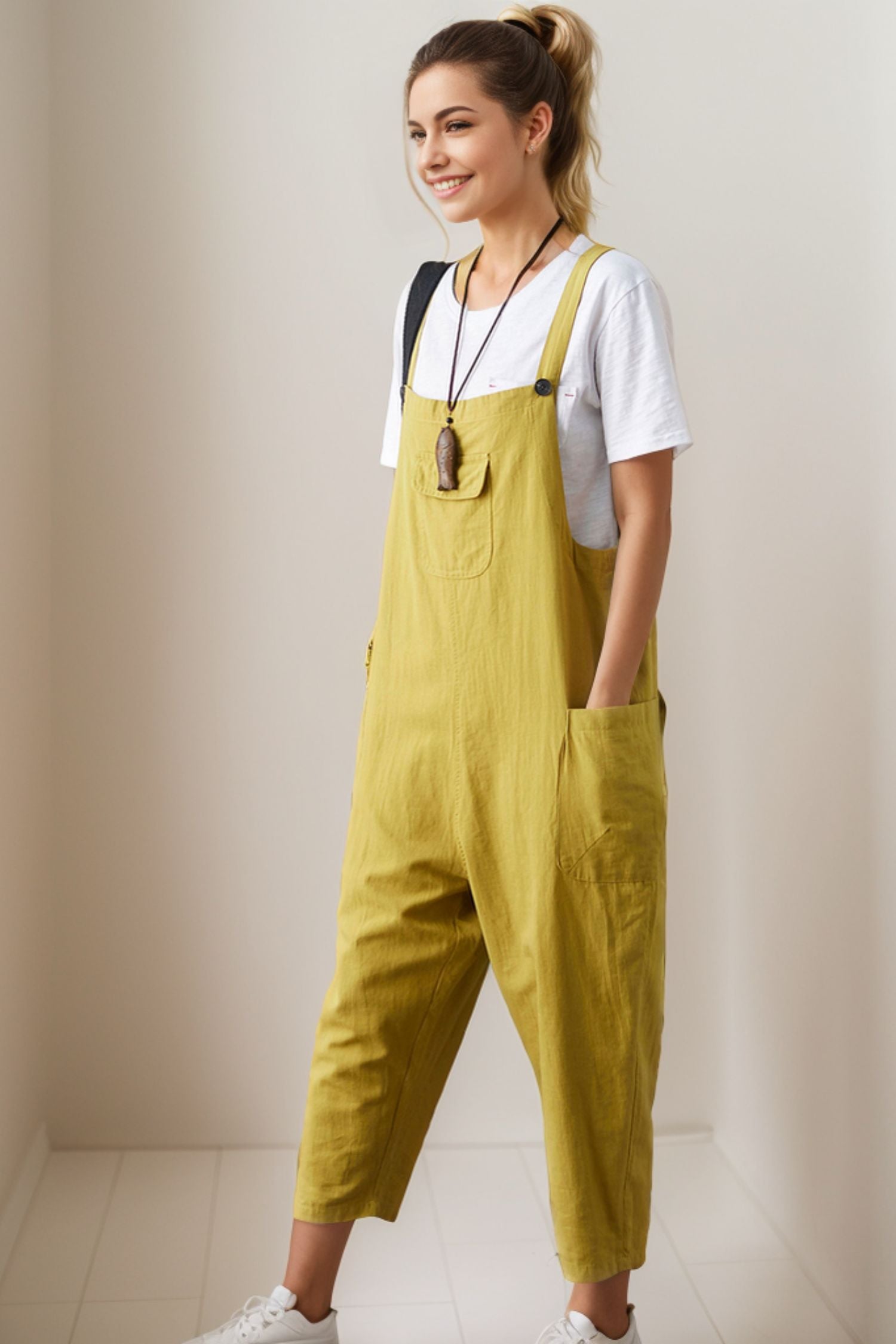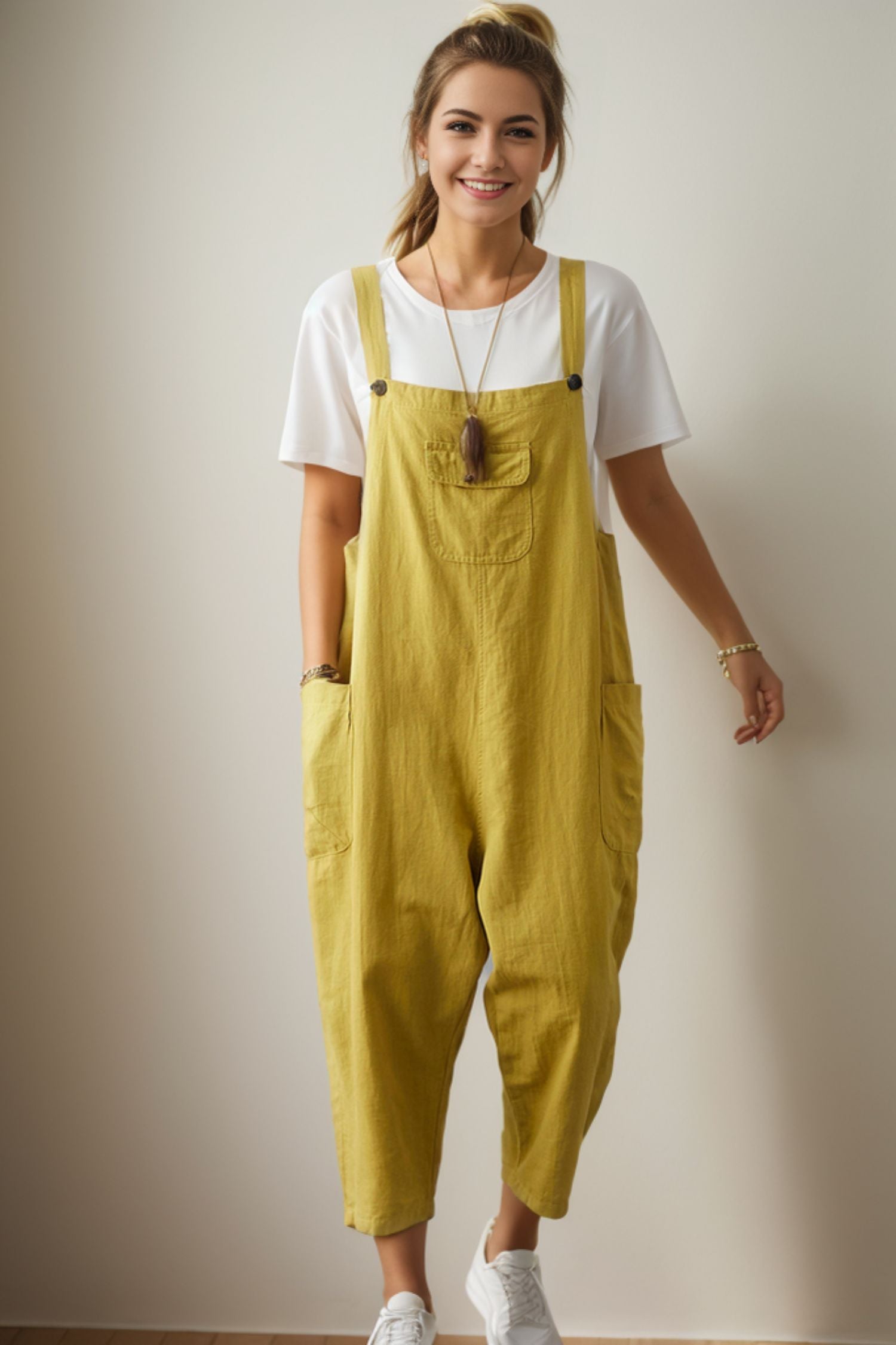 Yellow loose fit Linen Harem Jumpsuits C4143